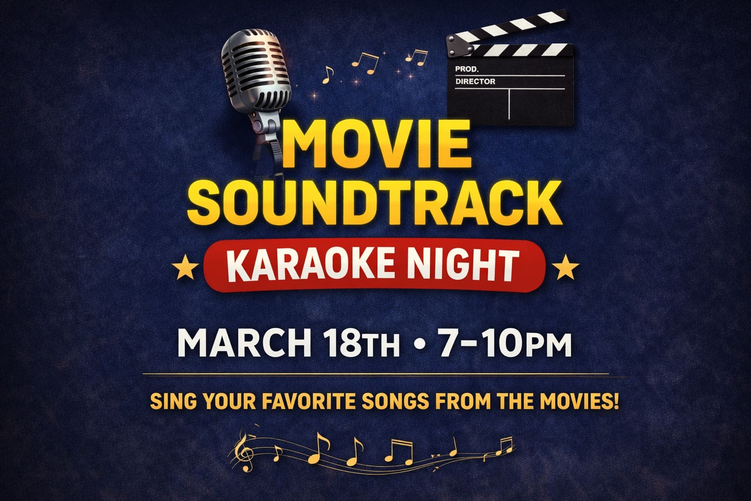 Join us on March 18th at 7 PM for a night dedicated to the greatest movie soundtrack hits of all time. From iconic 80s anthems to Disney singalongs, dramatic love ballads to high-energy dance tracks, if it made you feel something in a movie theater, it belongs on this mic.