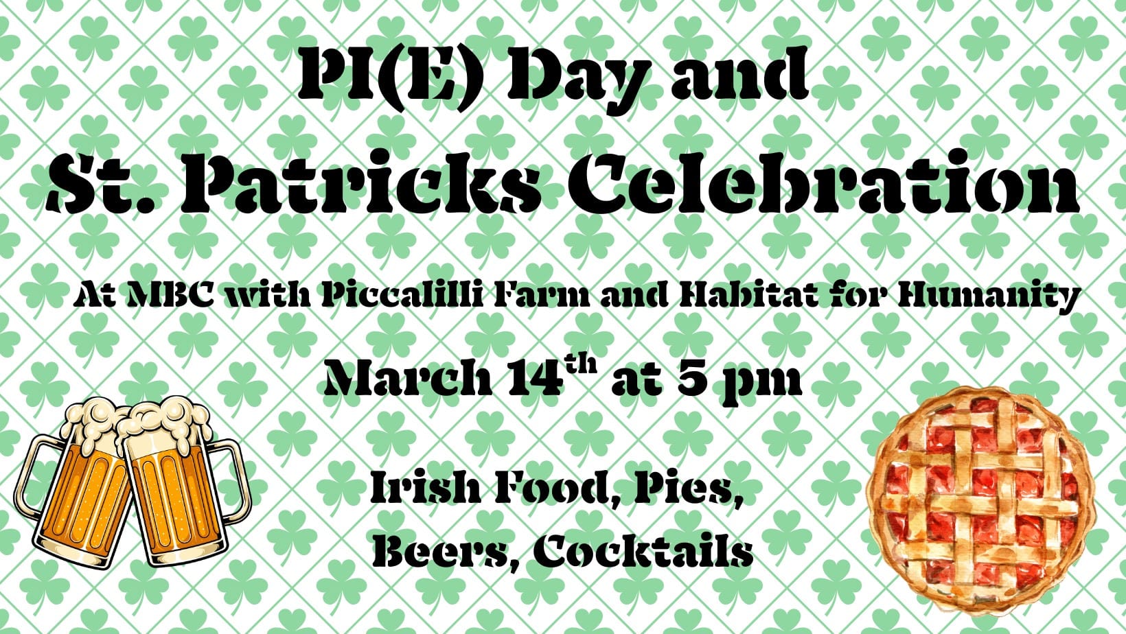 Join us at Manhattan Brewing Company starting at 5 PM as we celebrate P(I)E Day and St. Patrick’s Day the way they were clearly meant to be celebrated… together.