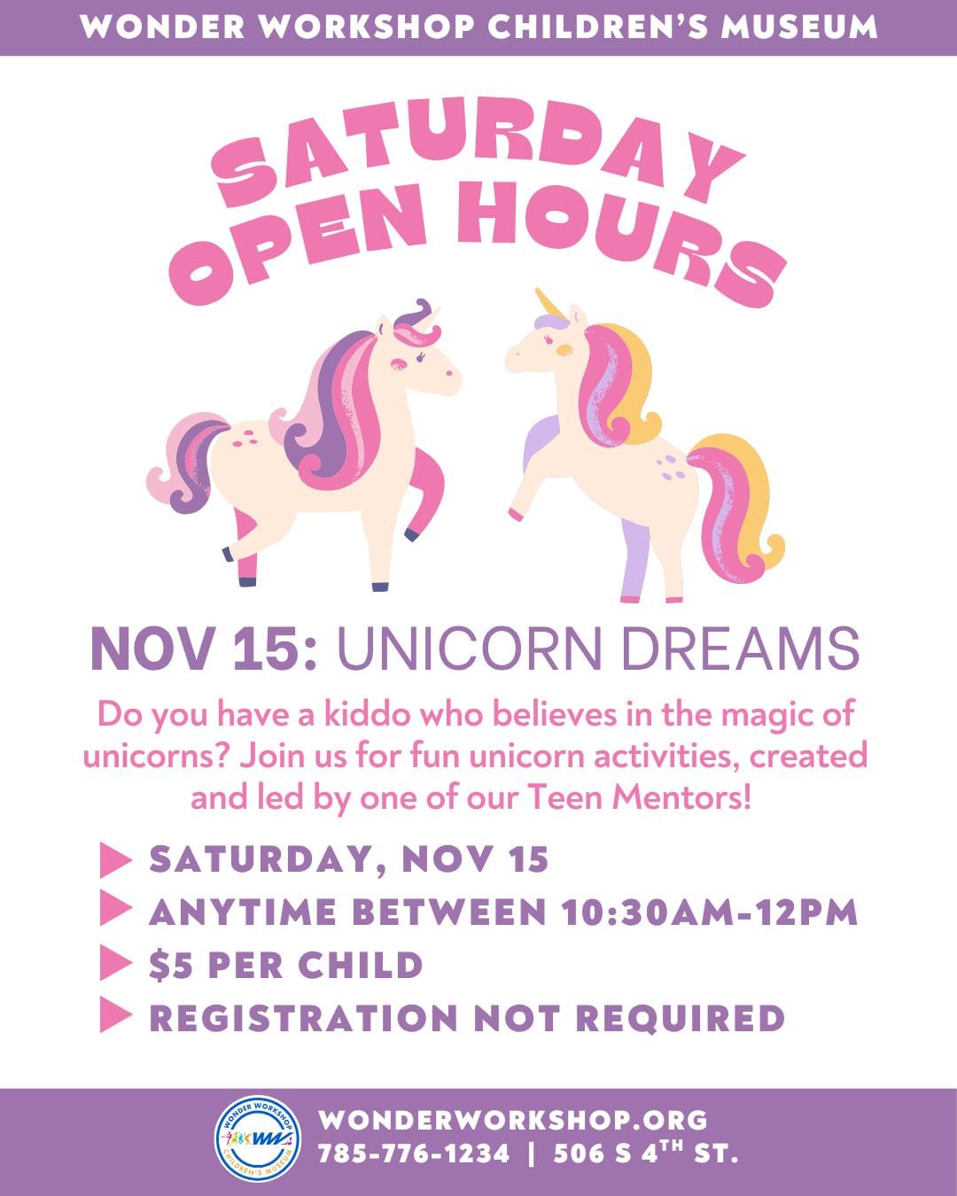 Drop in this Saturday for Unicorn Dreams anytime between 10:30am-12pm. In addition to unicorn activities, your $5 admission includes open free play throughout the museum!