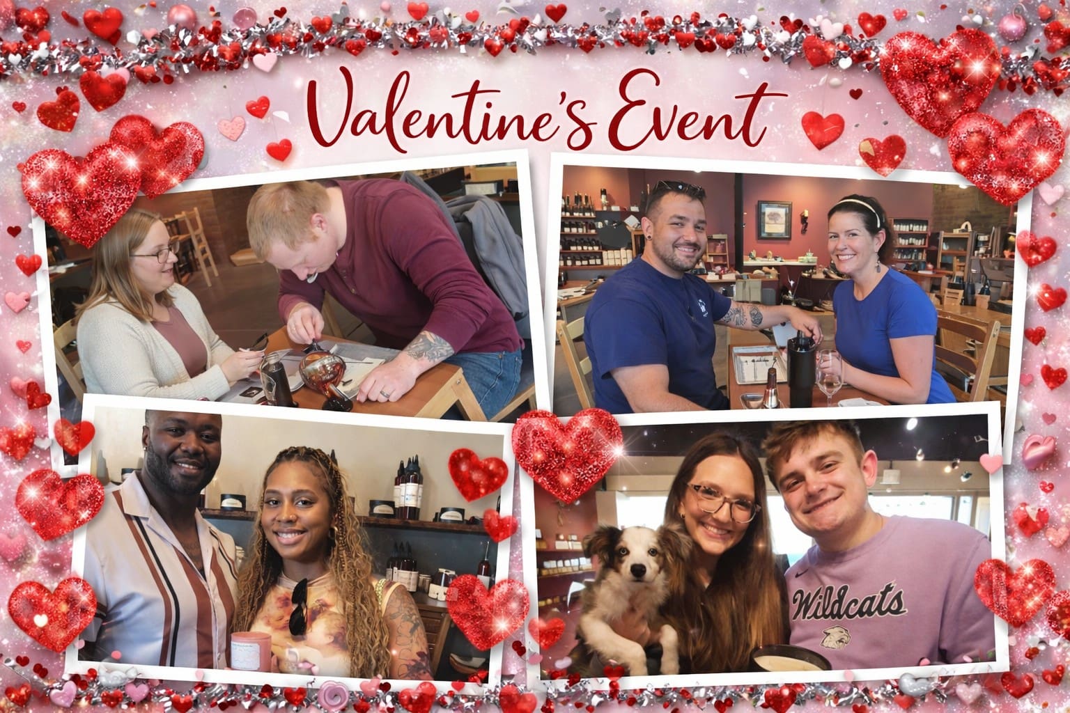Join us for a romantic Valentine’s evening of custom candle making, thoughtfully paired with wine and charcuterie.